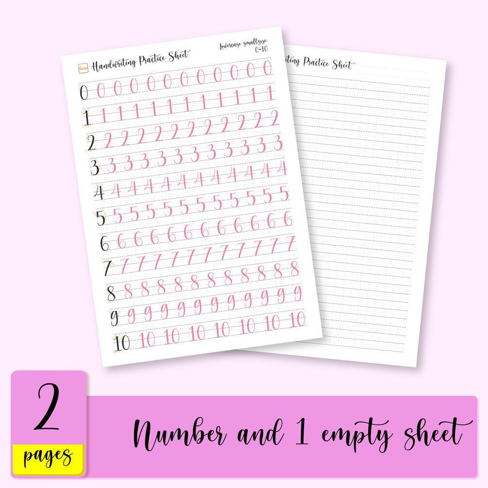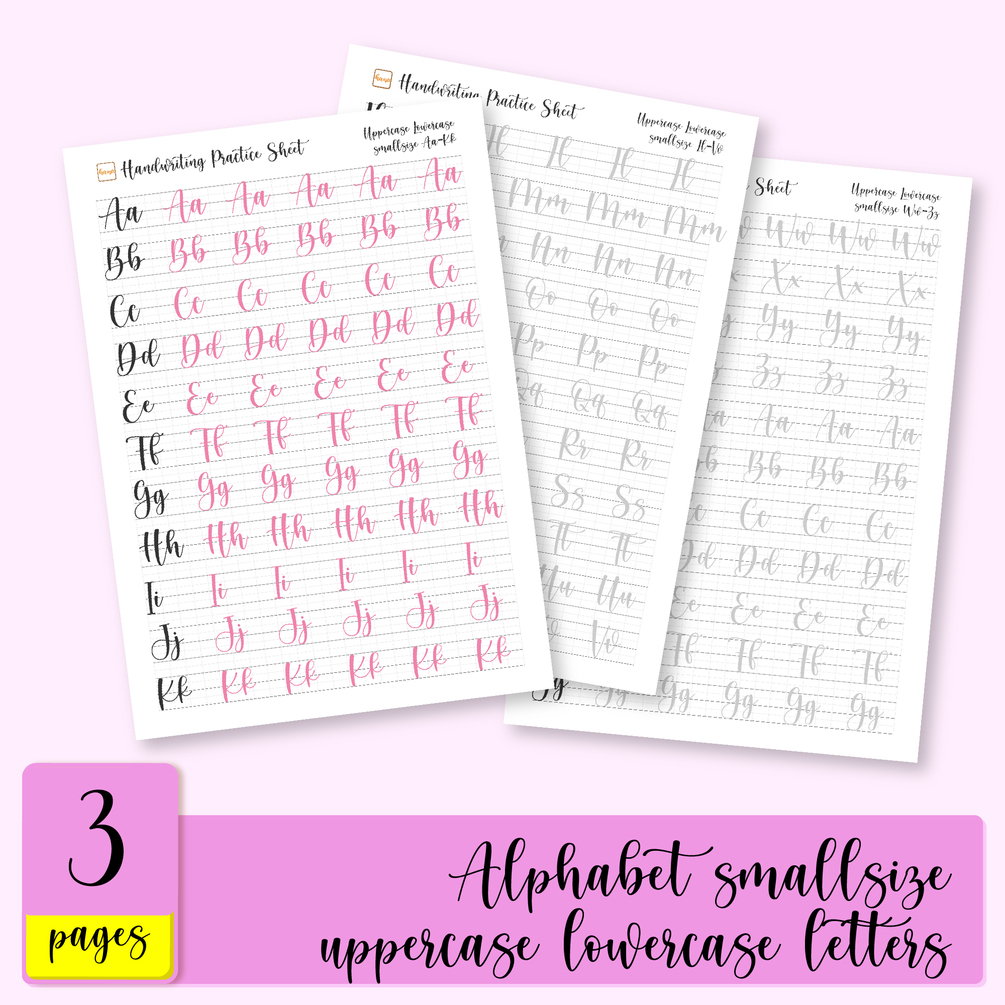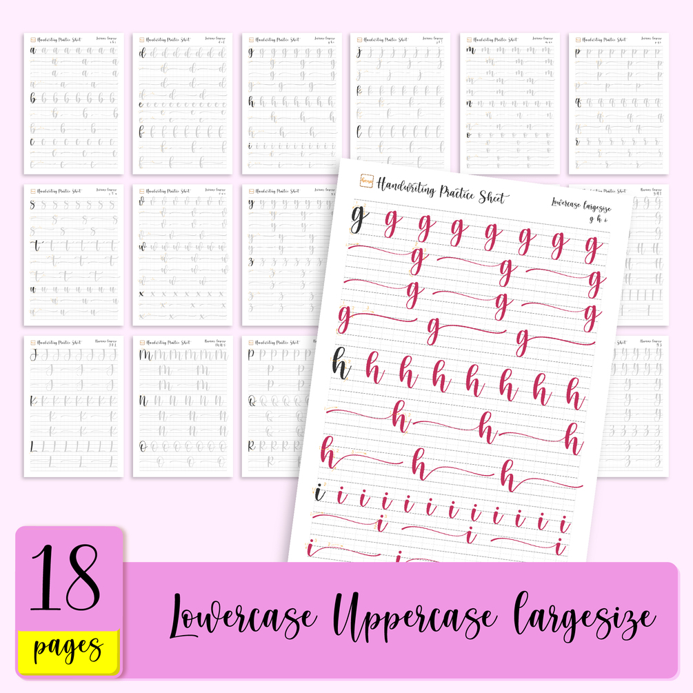 - Each sheet I put 3 letters, distinguishing uppercase and lowercase letters, small font size, large font size, numbers, practice words and 1 blank sheet.