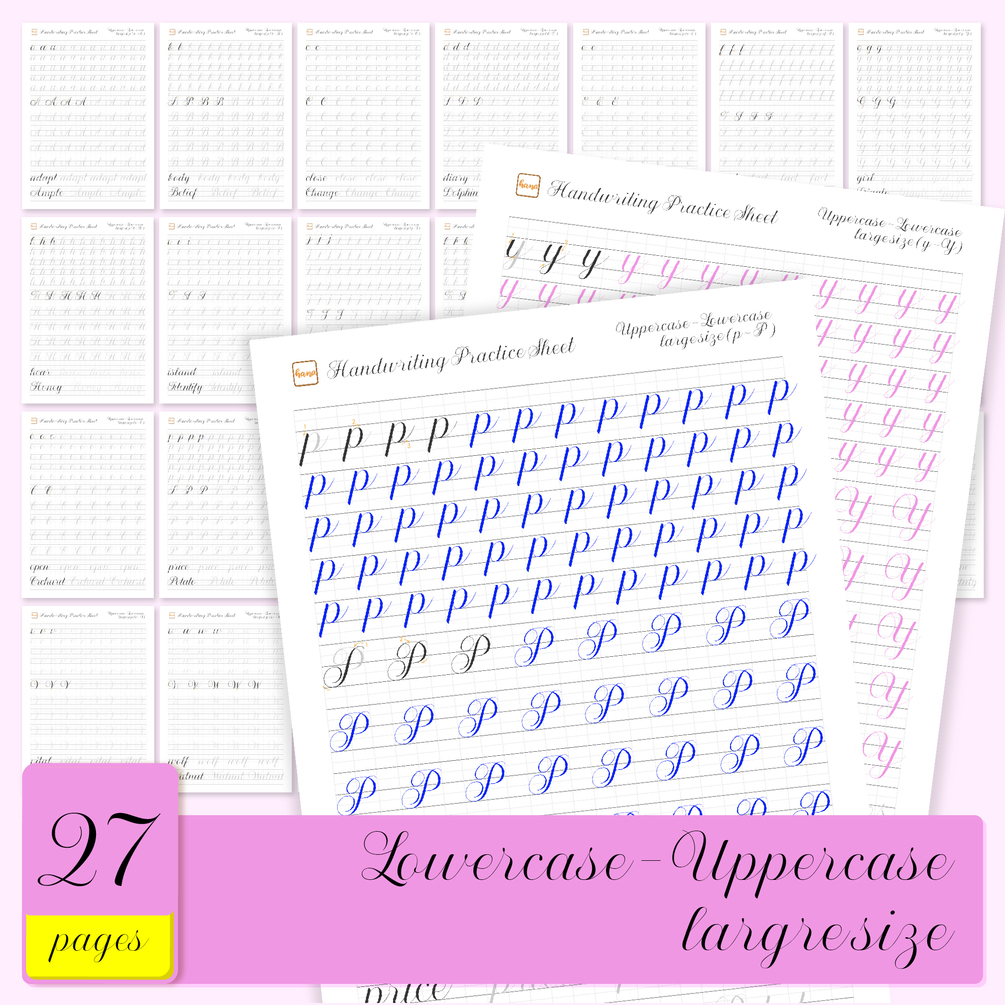This is 70 handwriting worksheets, each with instructions for writing each stroke of the alphabet from small to large. Furthermore, each letter will be accompanied by simple words for practice. I also created additional practice pages for simple phrases and sentences to make it easier to practice. Hope you have moments of relaxation and excitement in improving your handwriting with these practice cards.