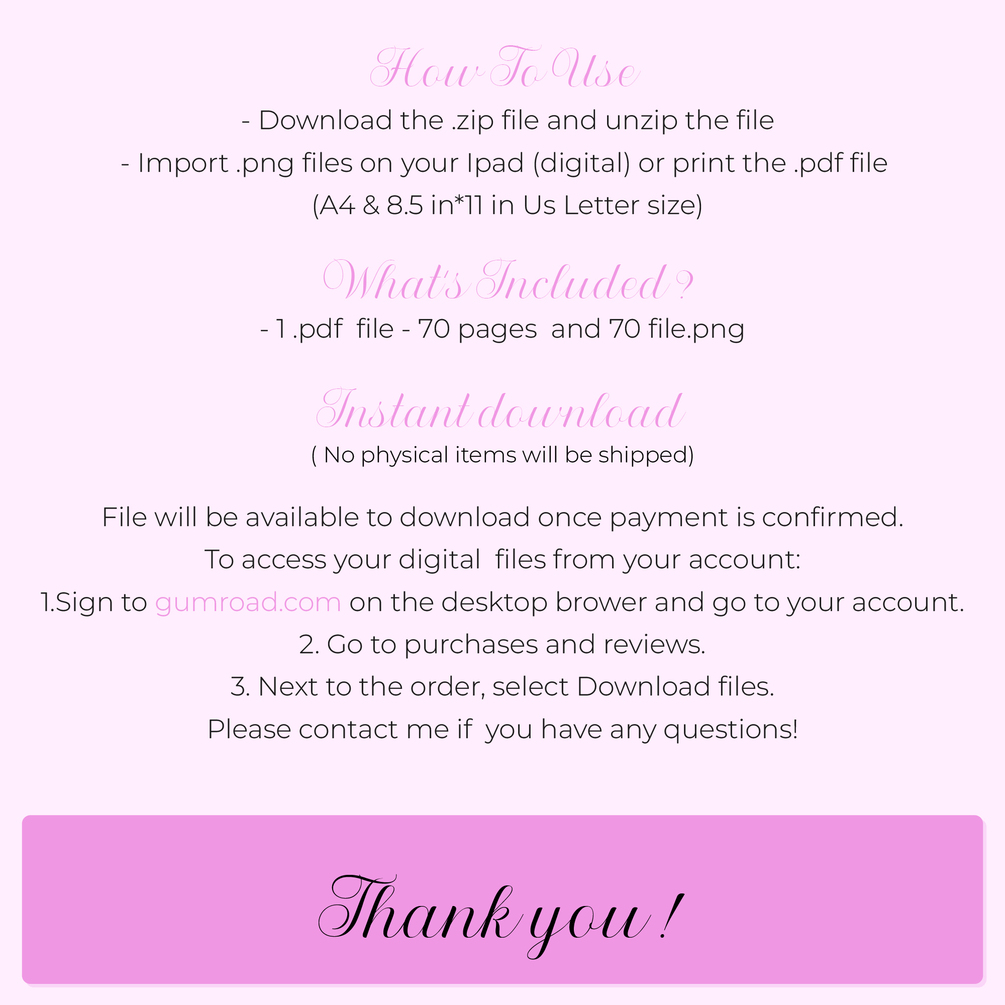 - 1 PDF file includes 70 pages and 1 .zip file includes 70 pages PNG.