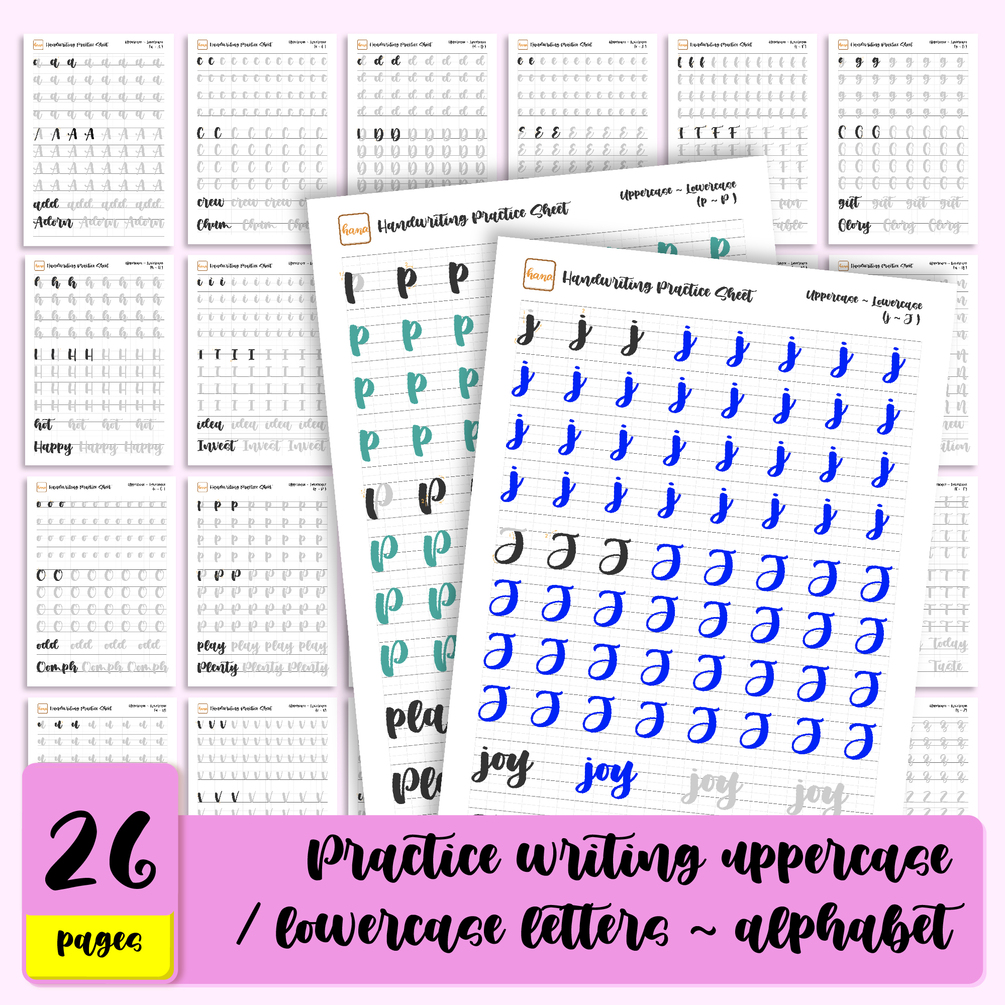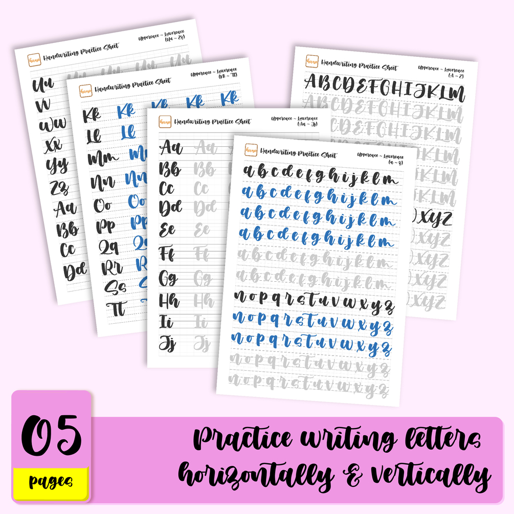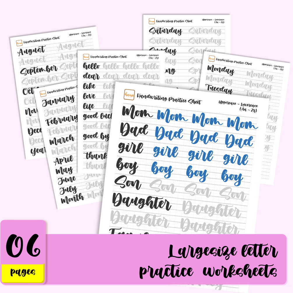 - On each sheet, I put 1 letter including: lowercase, uppercase and practice of that letter. And practice sheets for frequently used words and 1 blank sheet.