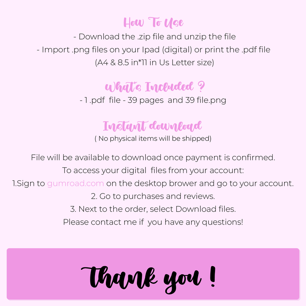 • This digital download is a standard letter sized PDF file (8.5 x 11") & A4.